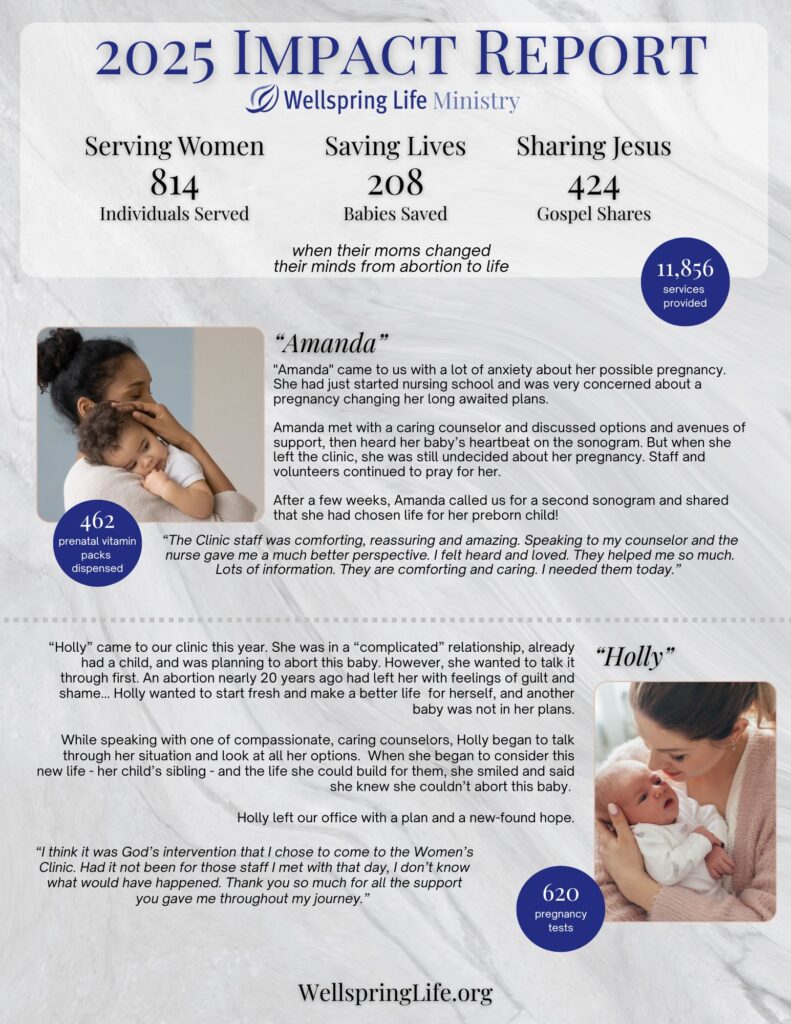 At Wellspring Life Ministry (formerly the Pregnancy Clinic Ministry), we are committed to your privacy and to building a strong, life-long partnership with you. We will not rent, sell, or otherwise publish your information.
